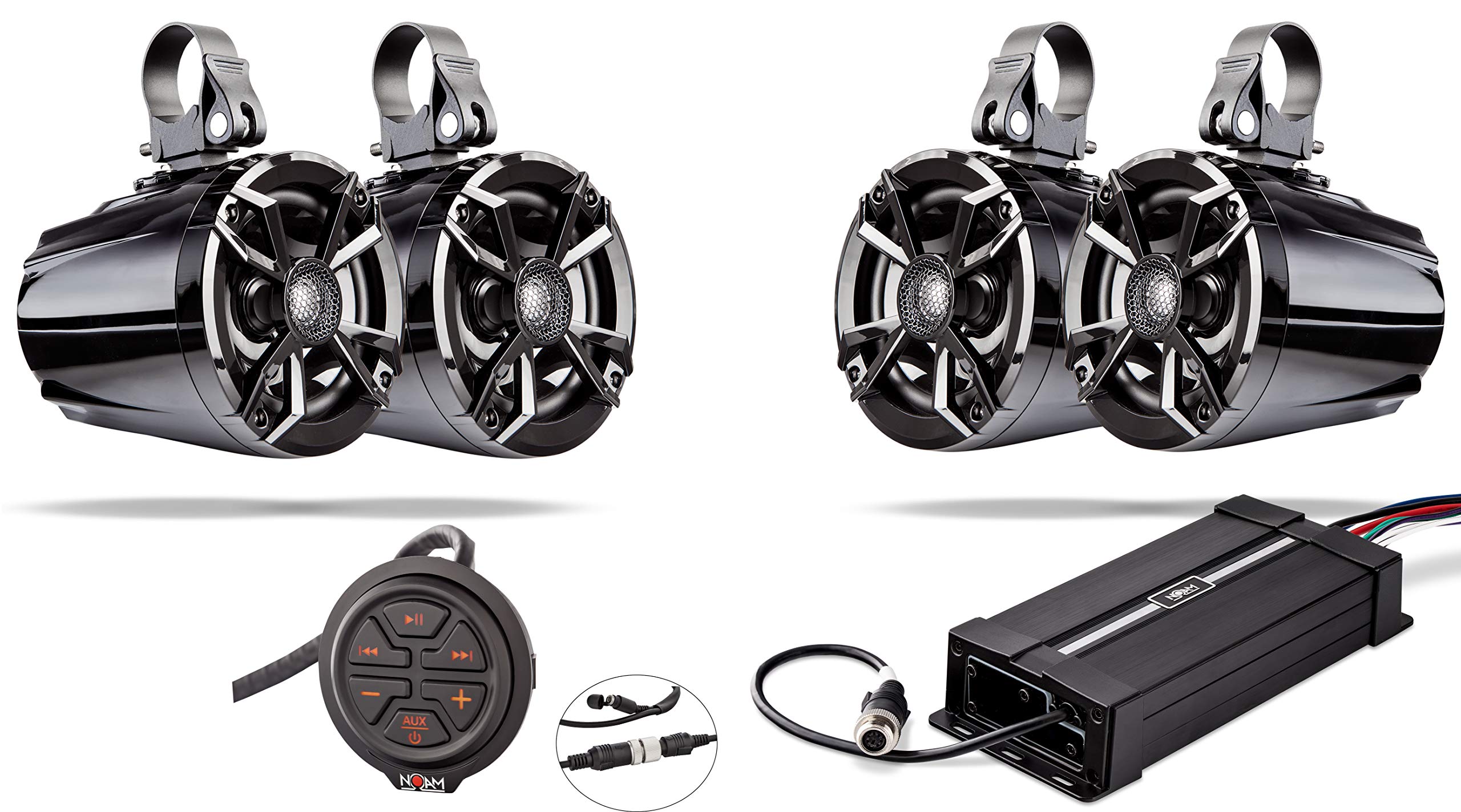 Noam Nutv5 Quad Marine Atv Golf Cart Utv Stereo System Kit Including 4 Waterproof Tower Speakers Weatherproof Controller Head Unit With Bluetooth And Aux Input And Four Channels Amplifier Buy Online In Bermuda